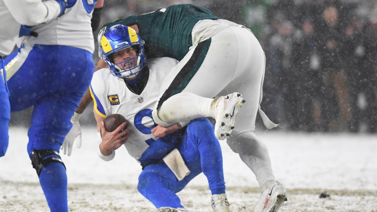 That strategy paid off again in Super Bowl 59, where the Eagles sacked Patrick Mahomes six times, a quarterback who usually escapes pressure like a ballast tank on a nuclear submarine. And it was on full display in the final minutes against Stafford, a 15-year veteran who was one read away from breaking hearts in Philadelphia.